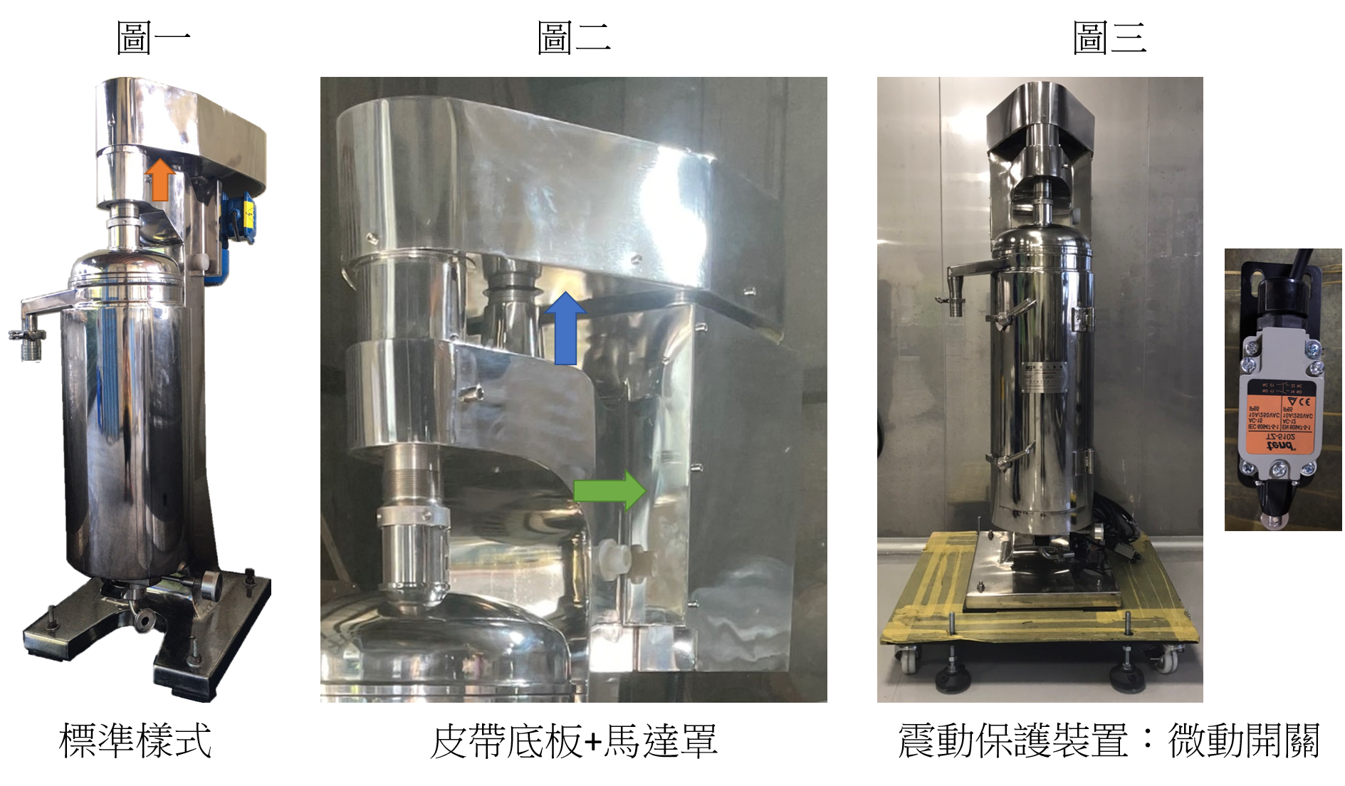 測試完物料,確認高速管式分離機有良好的分離效果後,對於標準樣式(圖一),客戶多次反應公安疑慮事項: