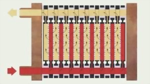液體從濾框一側的角孔通道進入濾室,濾板對濾材起支撐作用,液體在壓力作用下經過濾材的吸附、截留後,澄清濾液從濾板一側的角孔通道流出,濾渣留存在濾室中。