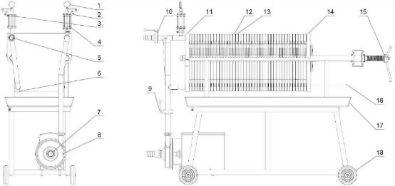 不銹鋼板框過濾機,整機的過濾部分由濾板和濾框交替排列組成。每片濾材與相鄰的濾板和濾框,共同組成一個過濾單元。